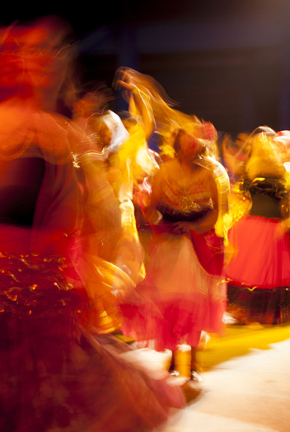 A primeira vez que a vi, ela estava parada em pé ao lado de uma árvore: uma mulher de pele cor de caramelo com grandes olhos escuros. Seus cabelos cor de pólvora eram tão longos que chegavam à linha do seu quadril: ondulados, volumosos e cobertos por um véu vermelho. Usava uma saia até os pés, rodada e em camadas, em que o tecido preto se intercalava com o vermelho.